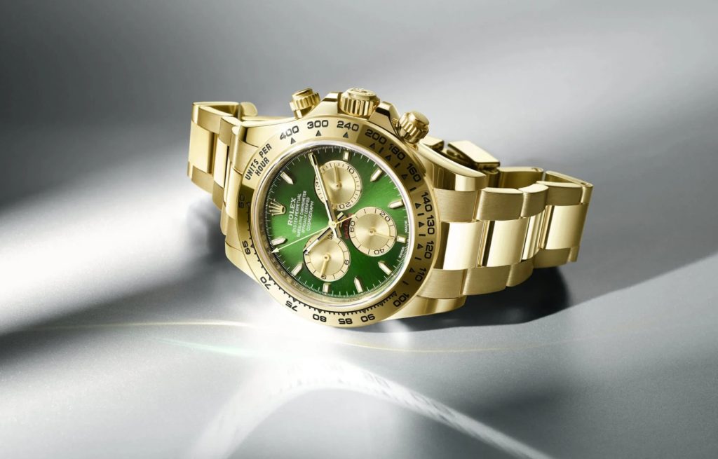 Let’s start with the latter, which seems to be the new star of the show. Previously known under the reference 116508-0013, this edition of the Swiss replica Rolex Daytona watches were presented in full yellow gold (case, bezel and bracelet) with a dark “Rolex Green” dial, tone-on-tone sub-counters and gold accents on the hands, applied markers and thin circles around the sub-dials. In 2025, the Daytona John Mayer makes a comeback but with some notable updates. The classic combination of full yellow gold with a green dial has been kept, but the new reference 126508-0008 now sports what seems to be a lighter tone of green with gold-toned chronograph sub-counters. Of course, being part of the 1265xx generation, it features slimmer indexes, hands and tracks, as well as the calibre 4131 inside. Worn on a yellow gold bracelet, this new John Mayer Daytona Green dial is priced at EUR 48,400.