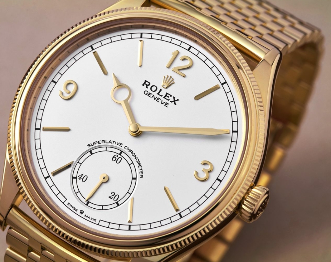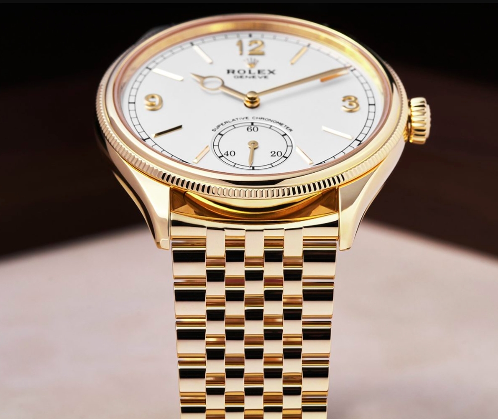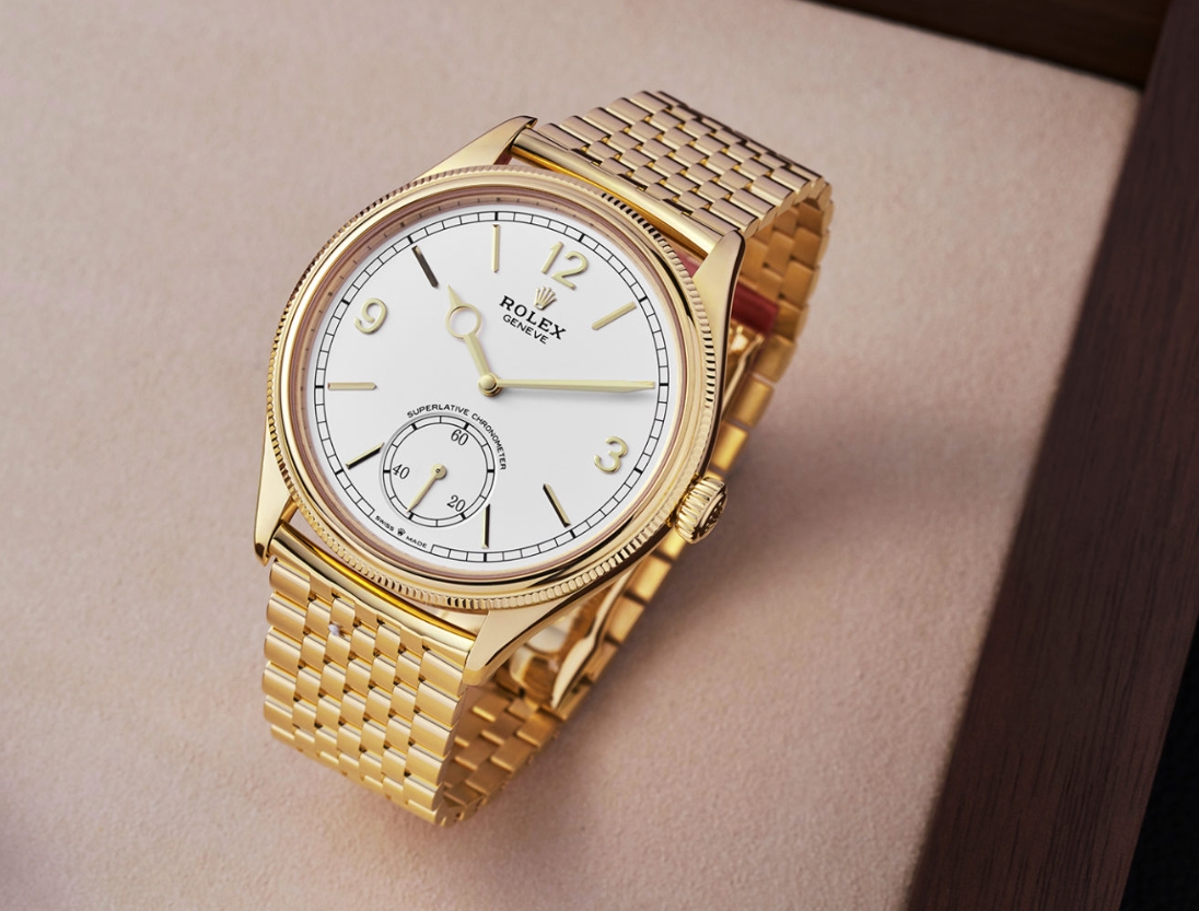 Rolex has expanded the 1908 collection with the Perpetual 1908 Settimo, a yellow-gold dress watch with an all-new seven-link bracelet. Settimo, Italian for ‘seven’, refers to the number of links across the bracelet; five slender links in the centre framed by two broader links on each side. The result is a supple, tightly constructed bracelet that complements the refined proportions of the 1908.
