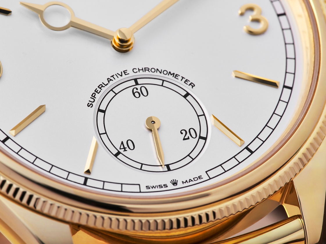 The slightly glistening lacquered dial and crisply faceted hour markers provide a bright, vivid appearance; perhaps its the sub-seconds at six and the lack of a date window, but it feels more refined than the dial of a typical Datejust or Day-Date. The case is very sleek on the wrist thanks to the cal. 7140, which, at just 4.05 mm in height, is 34% thinner than the brand’s own cal. 3235.